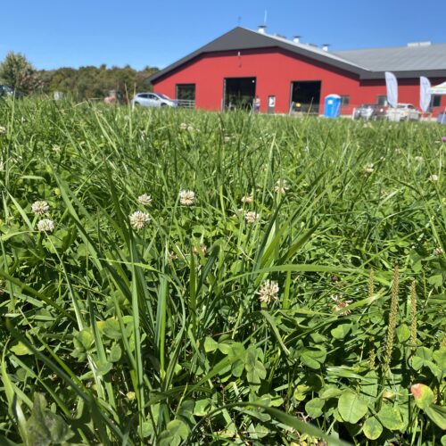 The diverse pastures at Ferme Y. Lampron et fils, made up of grasses and legumes, contribute to soil health, biodiversity, and forage system resilience. Their mix includes white clover, birdsfoot trefoil, smooth brome, meadow fescue, perennial ryegrass, and Kentucky bluegrass.